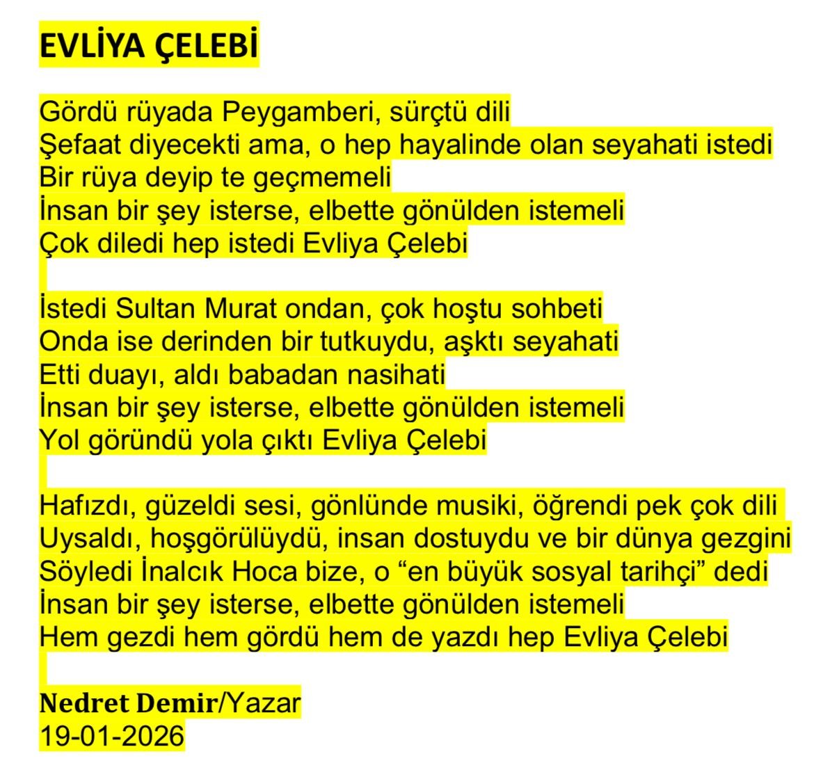 Nedret Demir/Yazar- 23-01-2026