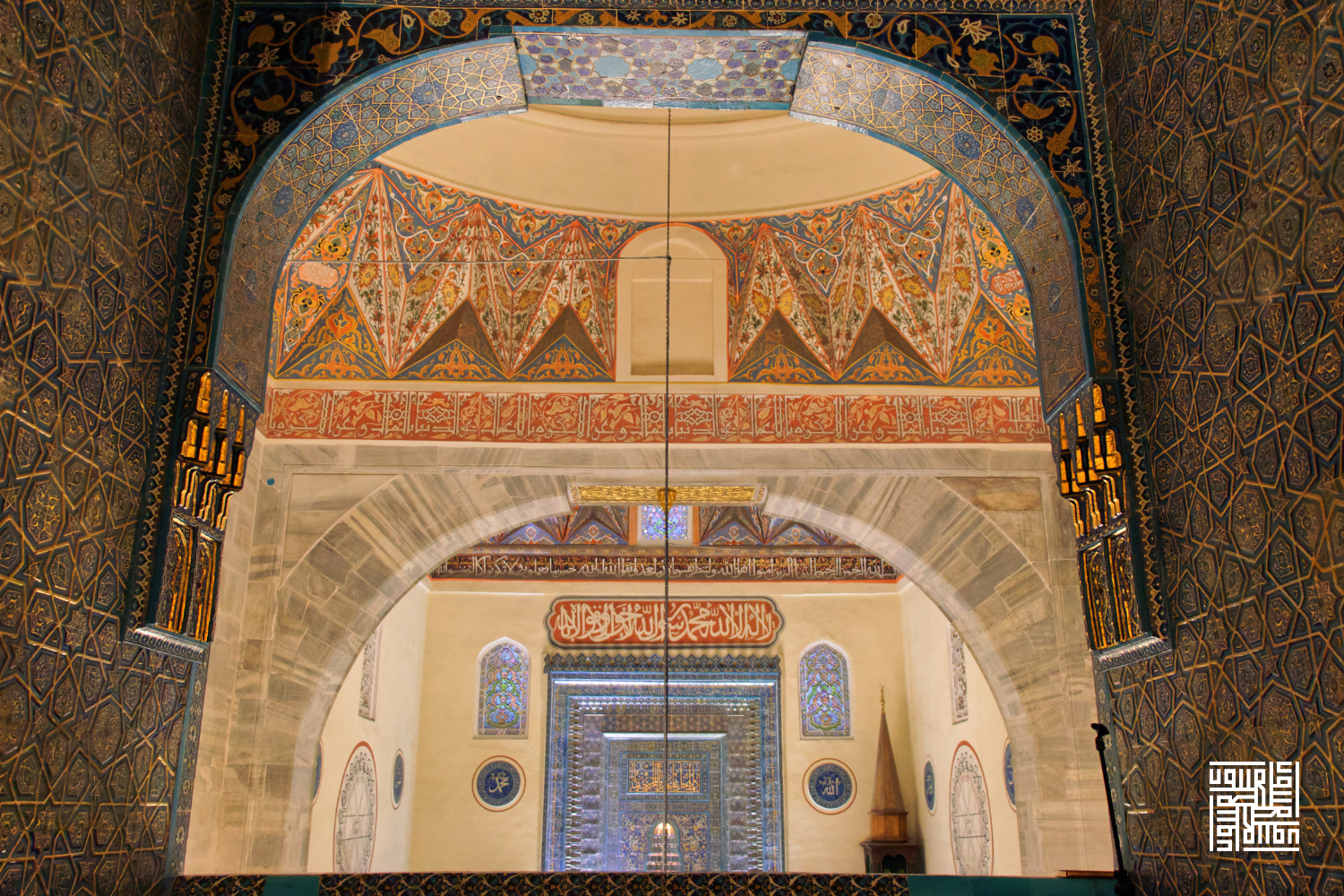Hünkar mahfilindeki bu çini pano üzerinde, "Kalplerin şifası, Sevgili’ye (Allah’a) kavuşmaktır"