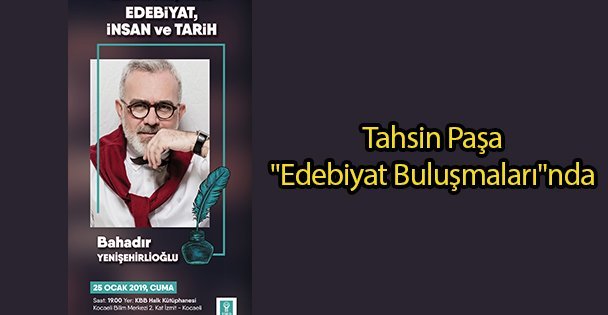 Kocaeli Büyükşehir Belediyesi ve Türkiye Dil Edebiyat Derneği Kocaeli Şubesi işbirliği ile düzenlenen ‘Edebiyat Buluşmaları’nın bu ayki konuğu Payitaht Abdülhamid dizisinin Tahsin Paşası Bahadır Yenişehirlioğlu olacak. "Edebiyat, İnsan ve Tarih" adlı söyleşisini gerçekleştirecek olan Yenişehirlioğlu, 25 Ocak Cuma günü saat 19.00’da KBB Halk Kütüphanesi’nde Kocaelili sanatseverlerle buluşacak.