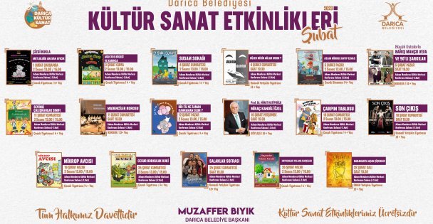 Darıca Belediyesi Adnan Menderes Kültür Merkezi Şubat ayı kültür sanat etkinlikleri takvimi