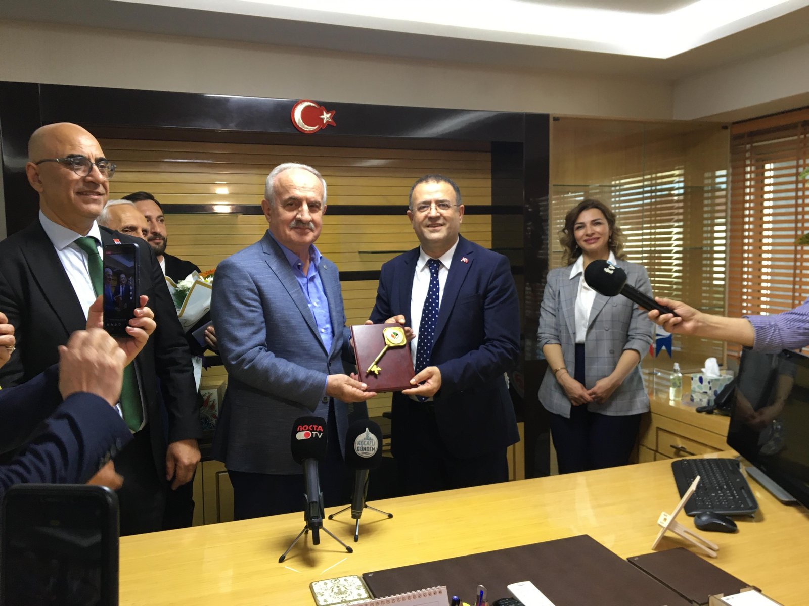 CHP'den Derince Belediye Başkanı seçilen Sertif Gökçe, mazbatasını alarak Zeki Aygün'den aldığı görevine başladı.